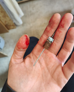Il a donc fallu fabriquer chacune des tiges qui soutiennent les petites 'Gélules' de conservateur, soudant un fil d'argent avec une petite pièce de 3mm préalablement découpée ..... si, si !! Puis tourner le fil sur un anneau d'argent évidement.....